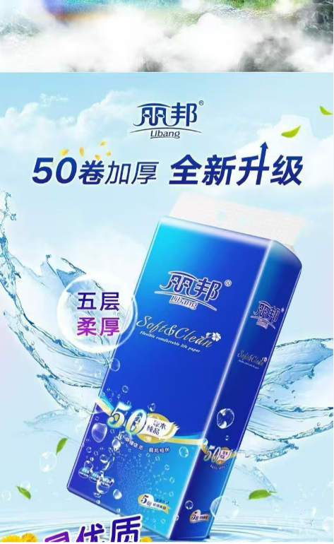 50卷麗邦衛(wèi)生紙批發(fā)家用卷紙巾木漿廁紙婦嬰紙手紙無芯卷筒