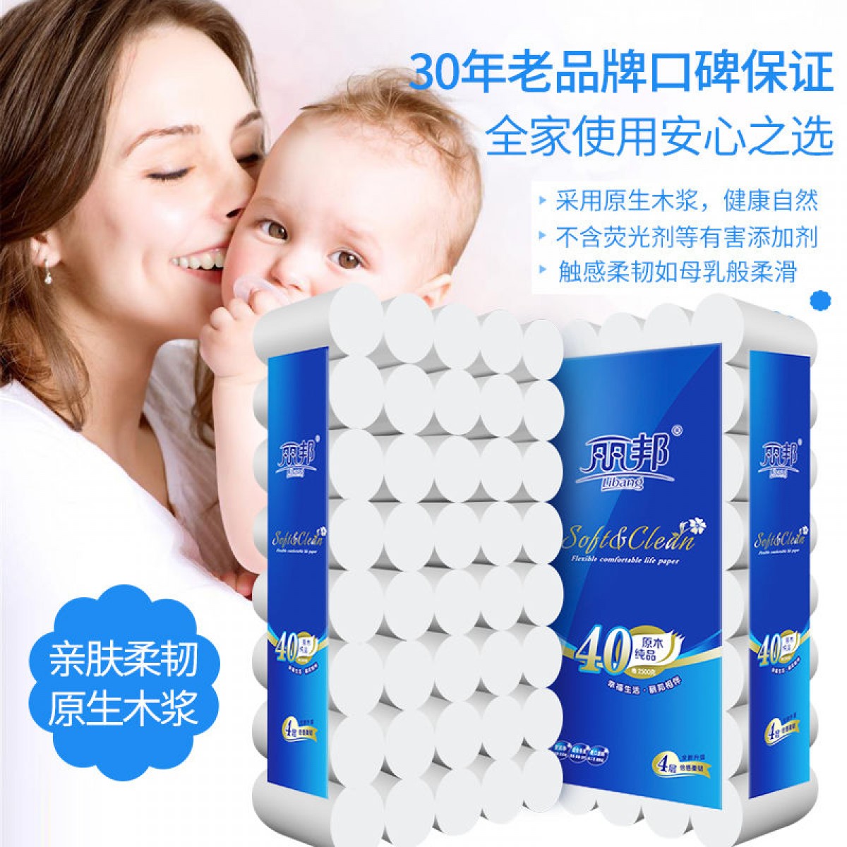50卷麗邦衛(wèi)生紙批發(fā)家用卷紙巾木漿廁紙婦嬰紙手紙無芯卷筒